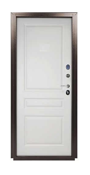 Дверь металлическая Норд металл/металл серии "Терморазрыв" оптимальное решение для установки в местах, подвергающихся воздействию природных температур. Данная конструкция двери надежно предотвращает промерзание двери при температуре на улице до минус 30 С. Дверь с терморазрывом имеет в районе притвора уникальную 2х камерную конструкцию, состоящую из холодной и теплой зон, которые разграничены между собой двойным слоем уплотнителя, пластиковым элементом в полотне и перфорацией в коробе. Дверь Норд комплектуется двумя сувальдными замками Промет 30.11 и Промет 30.01 четвертого класса взломостойкости, а также алюминиевой дверной ручкой Inspector 93 в цвете хром. Размеры наружные (ВхШхГ) 2104х1089х130 мм, Размеры светового проема (ВхШ) 1913х788 мм, Монтажные размеры короба (ВхШ) 2050х980 мм, Глубина (толщина короба, мм) 130, Толщина полотна 87 мм, 4 контура уплотнения (3 шлегель Q-Ion и 1 Е-образный), Сувальдный замок Промет 30.11, Сувальдный замок Промет 30.01, Ночная задвижка, 3 петли на подшипнике, Наполнение двери - пенополистирол высокой плотности. Применение пенополистирола в качестве внутреннего наполнителя, обеспечивает низкую теплопроводность и высокую звуконепроницаемость. Дверь Норд покрыта износостойкой полимерно-порошковой краской. Цвет внешней стороны двери: антик серебро, внутренняя сторона: фрезированный МДФ панель 6 мм, белое дерево.