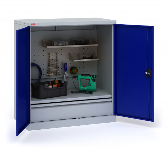 Инструментальный шкаф ИП-1-0,5/2 односекционный предназначен для хранения инструментов, слесарных приспособлений и других изделий на предприятиях, в мастерских, гаражах, подсобных помещениях. Представляет собой сборно-разборную металлическую конструкцию, собираемую при помощью саморезов.
