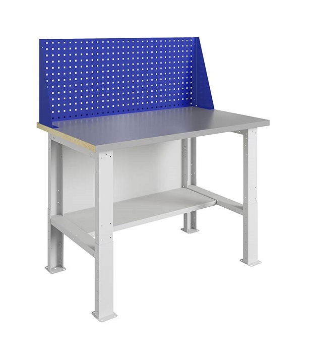 Стол производственный №122 предназначен для организации рабочего места в мастерских, автосервисах, на промышленных предприятиях. Изготовлены из высококачественной стали и отличаются усиленной конструкцией. Стол выдерживает нагрузку 750 кг. В комплект стола входит: Столешница WTS-120 мм 1 шт, Опора регулируемая WF-2  2 шт, Полка и стенка Profi WSh-120/0 1 шт, перфорированный экран WS-120 1 шт, комплект косынок для крепления экранов WS 1 шт. Столешница выполнена из фанеры толщиной 30 мм + накладка из оцинкованного листа металла 1,5 мм. Опоры возможно регулировать по высоте от 870 до 1120 мм с шагом 50 мм. Предусмотрена площадка для монтажа комплекта колес WS к опоре. Дополнительно на стол можно установить: подвесную тумбу WD-0, заменить накладку (фанера 30 мм или окрашенный листа металла 3/5 мм; перфорированный экран; светодиодное освещение и аксессуары для инструментов. Стол производственный поставляется в разобранном виде. Цвет: опоры и полка стенка - серый Ral 7038, экран - Ral 5002