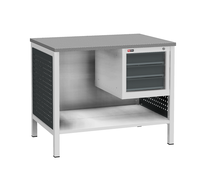 Тумба ВЛ-К-003 предназначена для установки на верстак серии ВЛ-К. Комплектуется 3 выдвижными ящиками. Полезный размер ящиков: (ВхШхГ) 80х306х459 мм. Тумба закрывается центральным ключевым замком (50 000 циклов). Цвет: серый Ral 7038, лицевая панель ящиков антрацит Ral 7016. Тип покрытия: эпоксидная порошковая краска