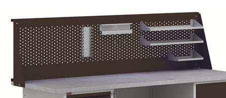 Перфорированный экран Э-1В черный - дополнительный экран длиной 1000 мм (ВП-1, ВП-Э). Устанавливается сверху на экран Э-1. Изготовлен из металла толщиной 1,2 мм. Экран имеет круглую перфорации диаметром 7 мм. Дополнительно на экран можно удлиненную полку, укороченную полку, держатель инструментов, держатель ключей, крючки длиной 80 и 50 мм. Цвет: черный муар Ral 7021. Тип покрытия: порошковое.
