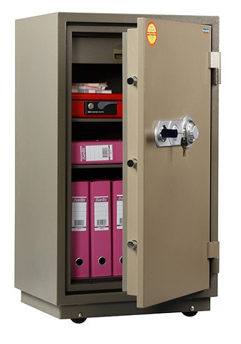 Сейфы серии FRS предназначены для сохранности документов и ценностей при пожаре Сертификат на огнестойкость – ГОСТ Р 50862-2005, класс 60Б При заливке двери и корпуса сейфа используется запатентованный состав огнестойкого бетона В конструкции применен тепловой замок, обеспечивающий огнестойкость в области притвора дверцы сейфа и препятствующий прохождению теплового потока Также периметр дверного проема оборудован огнестойким уплотнителем Сейф имеет ригельную система запирания В комплект поставки входят полка, кассовое отделение, пластиковые ножки и анкерное крепление к полу Установлен кодовый механический и ключевой замок Внимание - испытание на огнестойкость проведено с анкерным отверстием!
