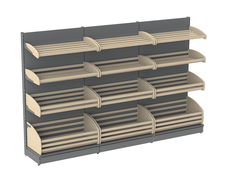 Дополнительные опции: можно увеличить/уменьшить высоту стеллажа (высота: от 1050 мм до 2950 мм), изменить ширину и глубину стеллажа (ширина: 665 мм, 1000 мм, 1250 мм, 1330 мм, глубина: 300 мм, 400 мм, 500 мм, 600 мм), комбинировать стеллаж полками и стенками. Возможно установить стеллаж отдельно стоящим, островным, угловым или собрать в единую линию. А также дополнять стеллажи навесными элементами, фризами, торцевыми панелями, ценникодержателями, ограничителями и другими элементами стеллажа.
