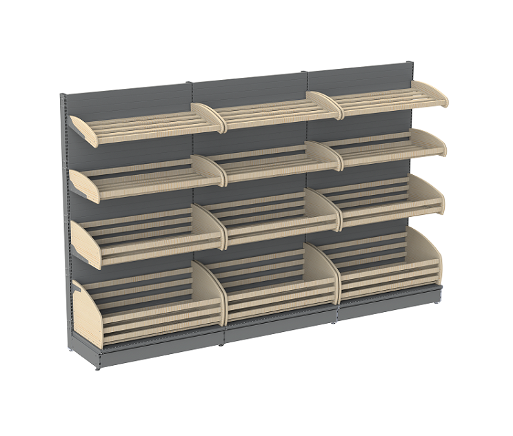 Конструкция лотков имеет реечное дно, цельные бортики, предотвращающие падение товара на пол. Лотки и накопители изготовлены из натурального экологического материала - мебельного щита сосновых пород, что соответствует ГОСТу и обеспечивает сохранение свойств свежего хлеба.