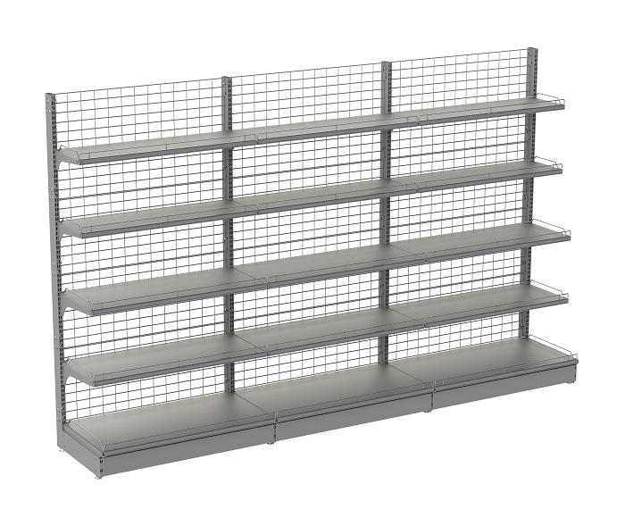 Стеллаж пристенный сетчатый предназначен для оборудования торговых залов и магазинов любых форматов. Стеллаж пристенный сетчатый подходит для продовольственных и непродовольственных товаров. Изготовлен из высококачественной листовой стали с порошковым покрытием. Использование сетчатых стенок увеличивает обзорность товаров и придает конструкции легкость, преображает торговый зал. При этом по нагрузочным характеристикам стеллаж с сетчатой стенкой не уступает стандартному стеллажу со сплошной стенкой.